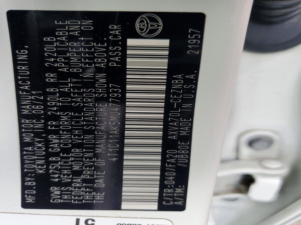 VIN: 4T1C11AK5MU******